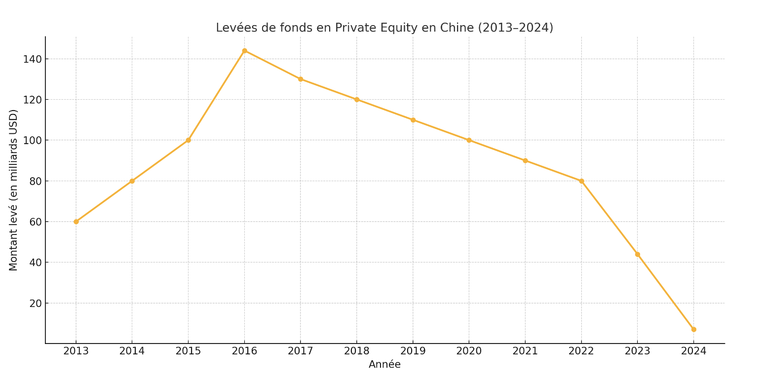 📎 Résultat : la part de la Chine dans les levées PE en Asie est passée de 86 % (2017) à 27 % (2024).